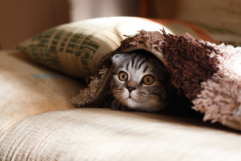 3. Make sure your cat has lots of safe and cosy hiding spots to hide in when they are frightened - give your cat hiding places that are both on the floor level and up high.